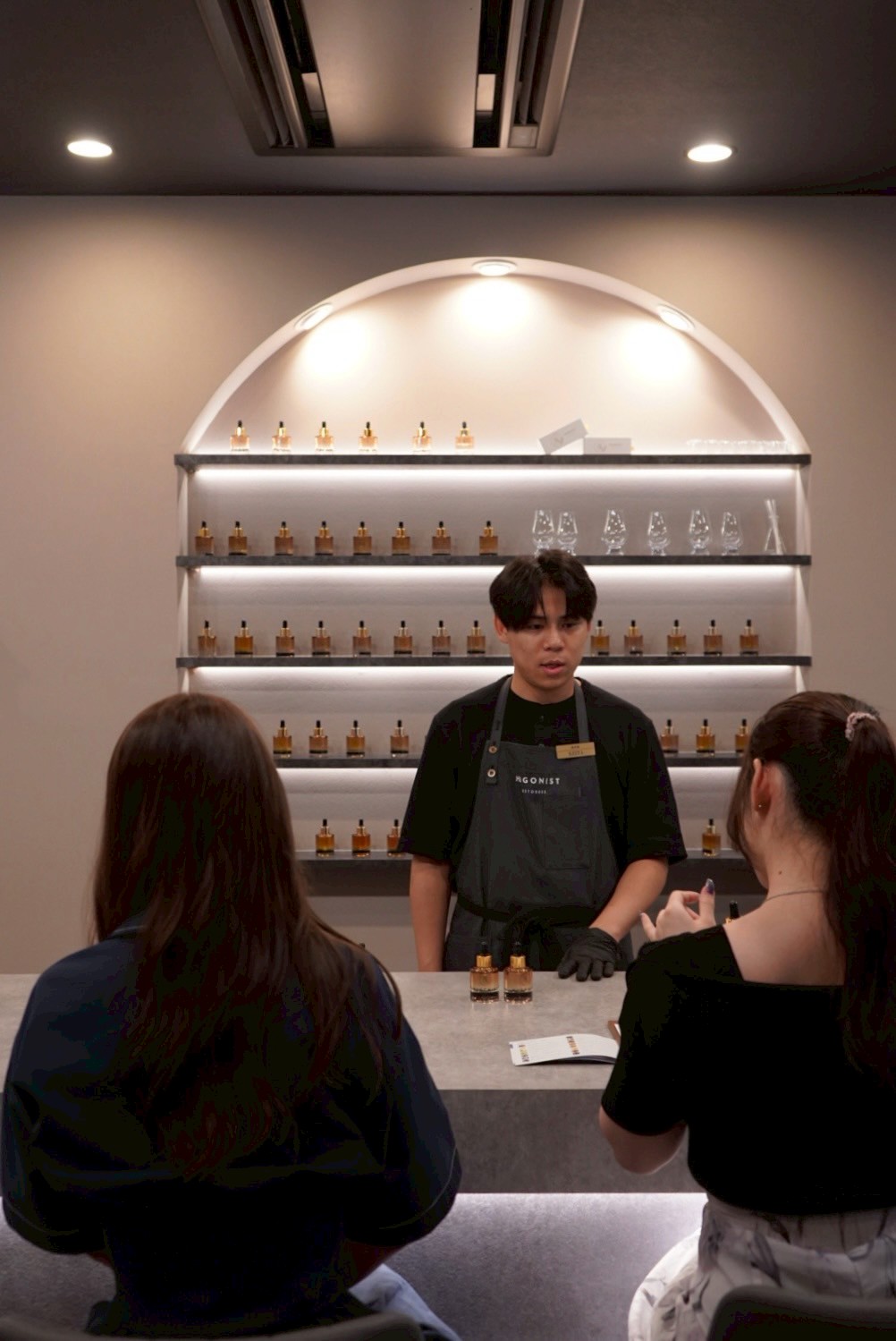 ウッディ・シトラス・フローラルなど100種以上の香料を実際に香りながら、「なりたい印象」に近づける香りを絞り込みます。