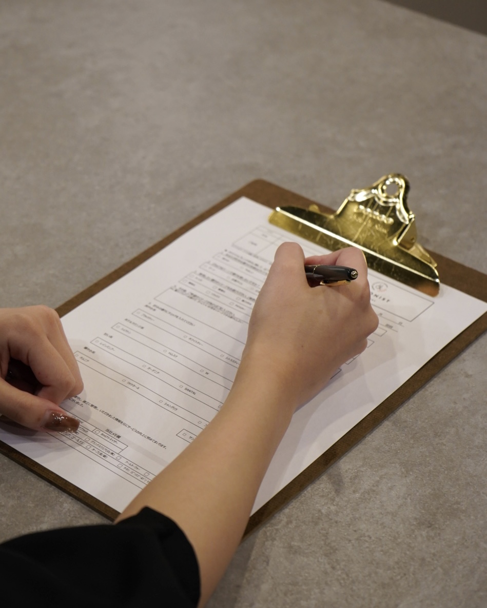 「お出かけ用」「大人っぽい」など、香水を使う目的や好みの香りをヒアリングシートに記入。香りの方向性を調香師と一緒に探ります。